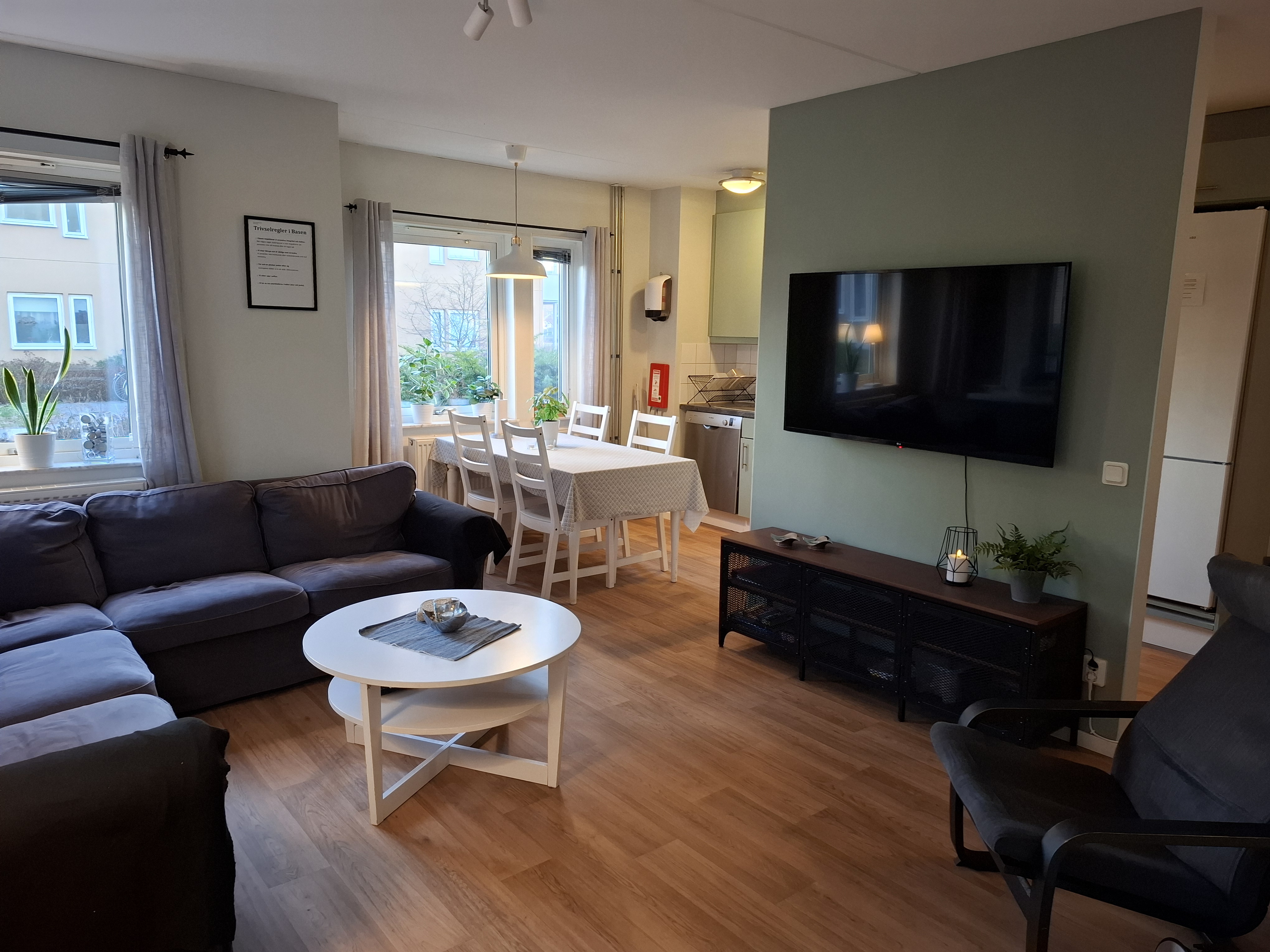 Slavsta är ett lugnt, naturskönt område med hästhagar åt ena hållet och 10 minuters bussresa till centrum åt andra hållet. Vi uppmuntrar till social gemenskap med olika aktiviteter i basen. Vi har lördagshäng och turas om att laga gemensamma middagar.